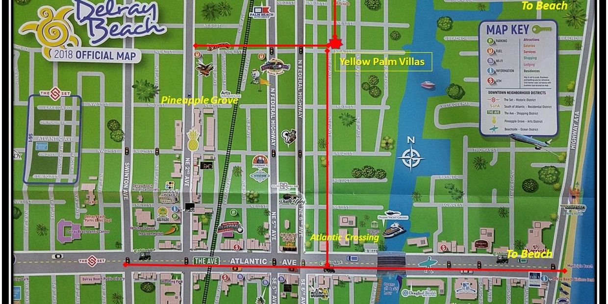 Located on safe, desirable and historical NE 7th Ave, we are 3- 4 blocks north of Atlantic Avenue. Only 2 blocks to Publix Grocery, Liquor, Pharmacies, Banks, Boat and Bike rentals. Within a 5-10 minute easy walk find Nightclubs, Restaurants, Coffee & Bakery shops, Spa/Salons, Shopping, Pineapple Grove Art & more Shops . The Beach is a scenic 15 minutes (6-8 blocks), easy biking, walk or Free Delray club car taxi. For evening entertainment in the outdoors, the Old School Square offers excellent concerts/festivals. The Delray Tennis Club is 10-15 mins walk (tennis, Pickleball).